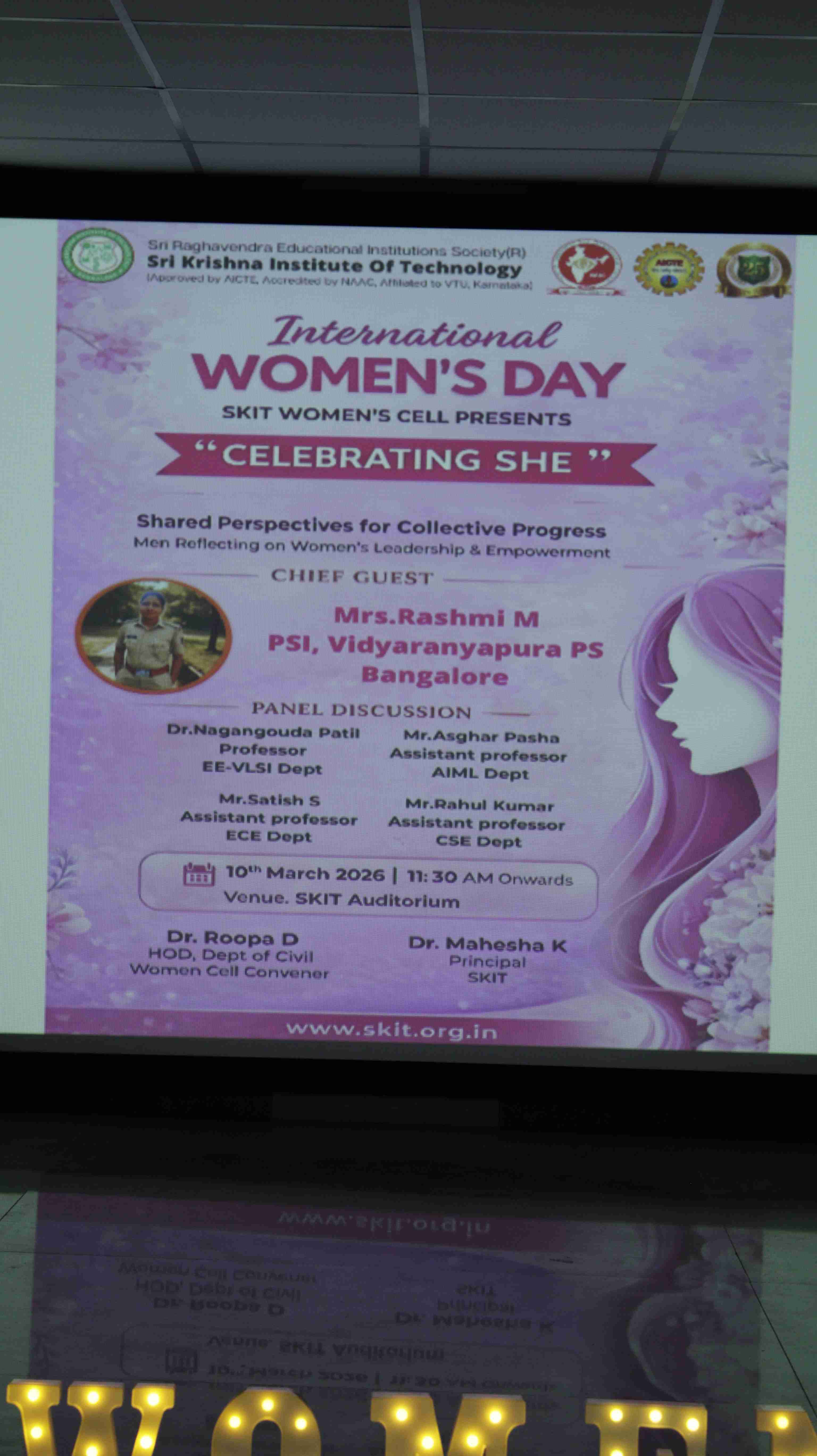 With the presence of Mrs. Rashmi M, a respected PSI from Vidyaranyapura Police Station, the event gains real-world insight into strength and resilience. Adding depth to the celebration, a panel of faculty members shares perspectives on how men can actively support and uplift women in society.